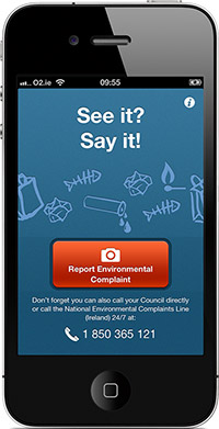 The EPA App for iPhones called See it? Say it! allows you to report environmental pollution. Using the App you can now take a photograph of the pollution incident, input GPS location coordinates, add a summary description of what you want to convey and your contact details and this will automatically be sent to the relevant local authority for follow up.